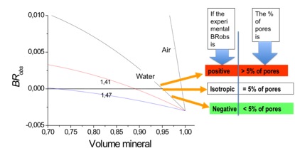 - As, from theory (see figure plot above), negative birefringence in water occurs for mineral volume > 95% (5% of pores), the negative BRobs of enamel experimentally detected in the laboratory can be interpreted as presenting less than 5% of pores (the same as normal enamel).